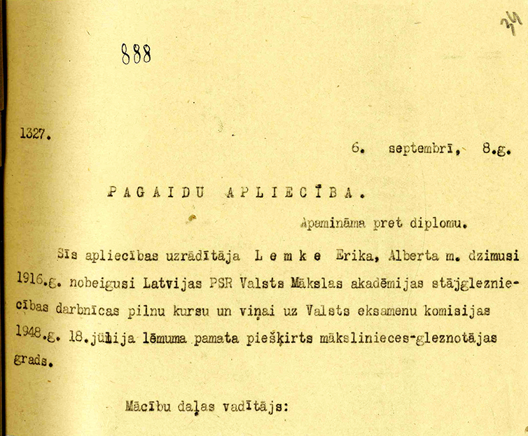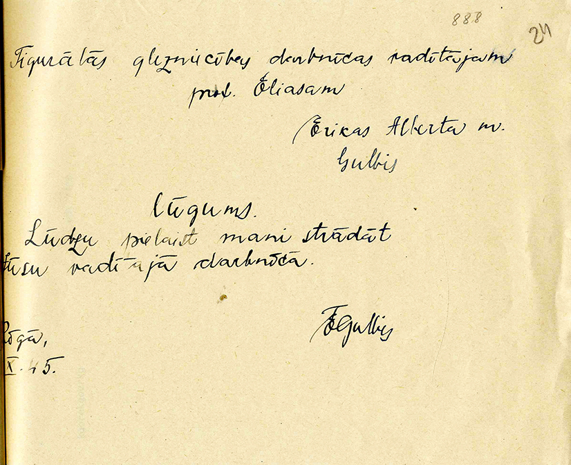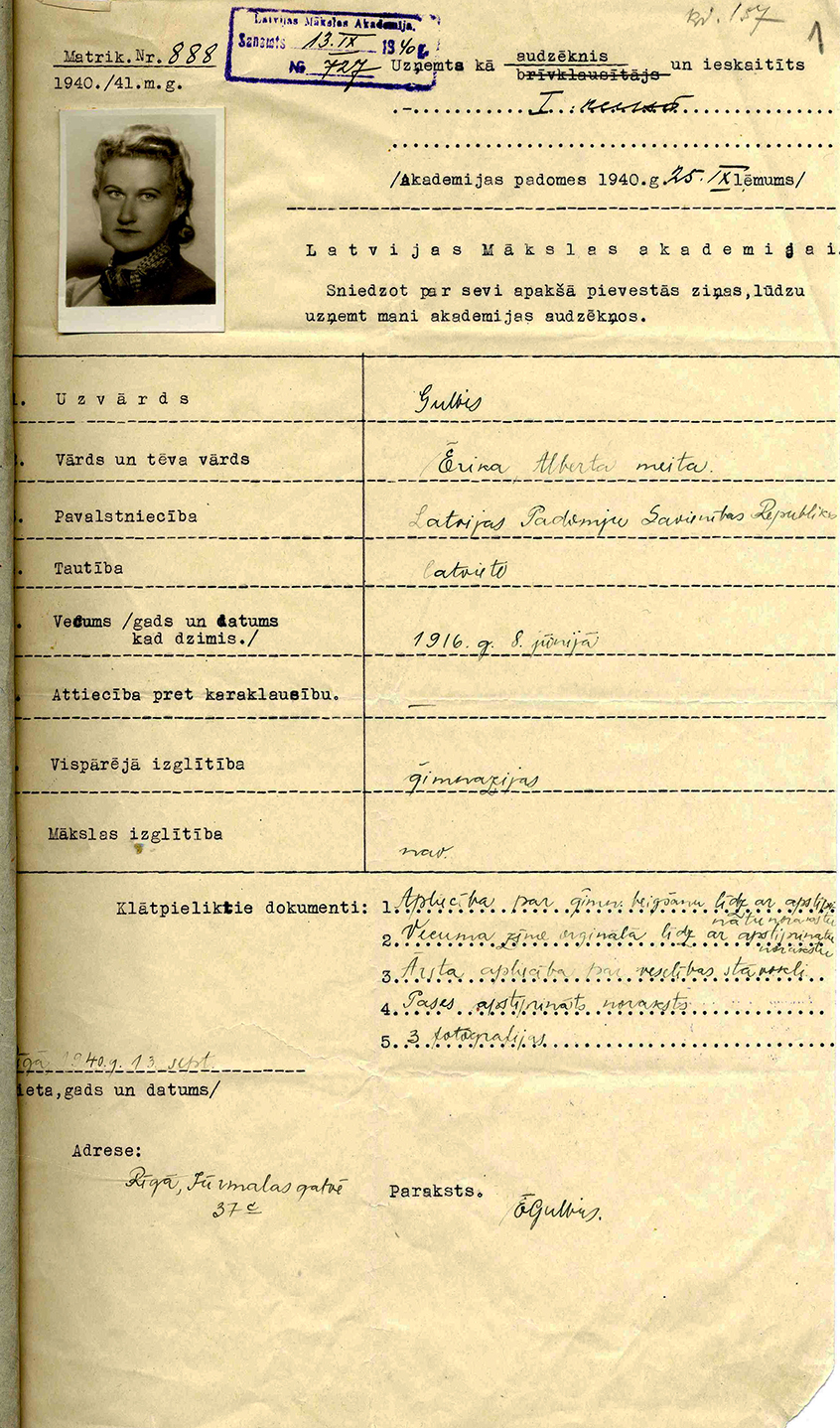 Ērika Gulbe. [1924] LNA LVA, 2405. f., 1-v. apr., 18. l., 21. lp. |