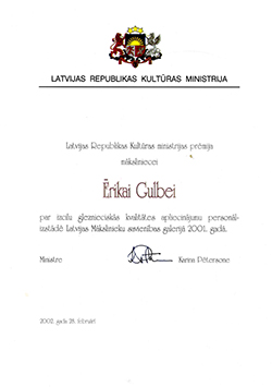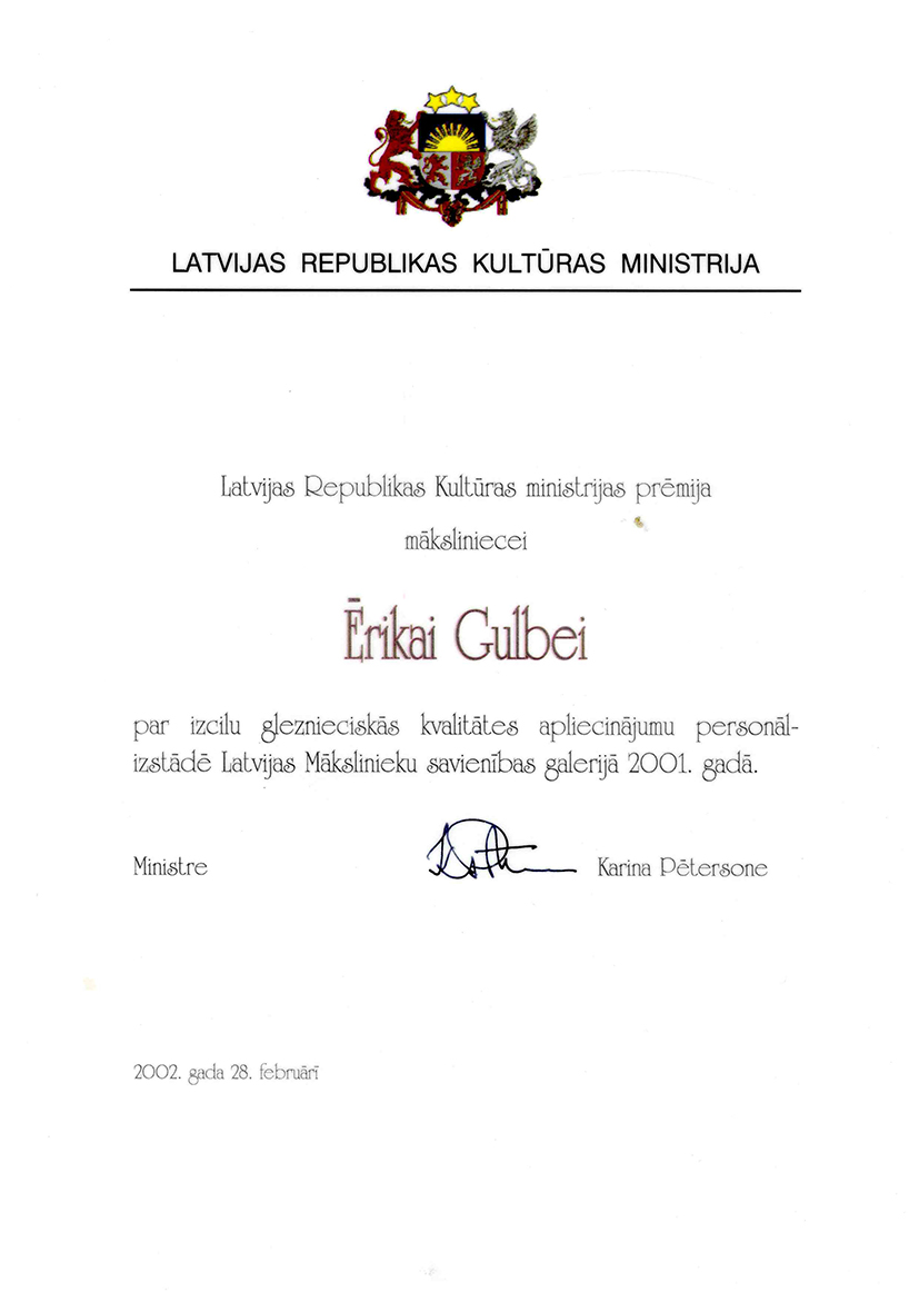 Ērika Gulbe 2001.gadā. LNA LVA, 2405. f., 1-v. apr., 18. l., 11. lp. |