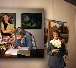 Ērika Gulbe personālizstādes atklāšanā Latvijas Mākslinieku savienības galerijā. Rīgā, 2001.gada 19.jūlijā. LNA LVA, 2405. f., 1-v. apr., 25. l., 3. lp. |