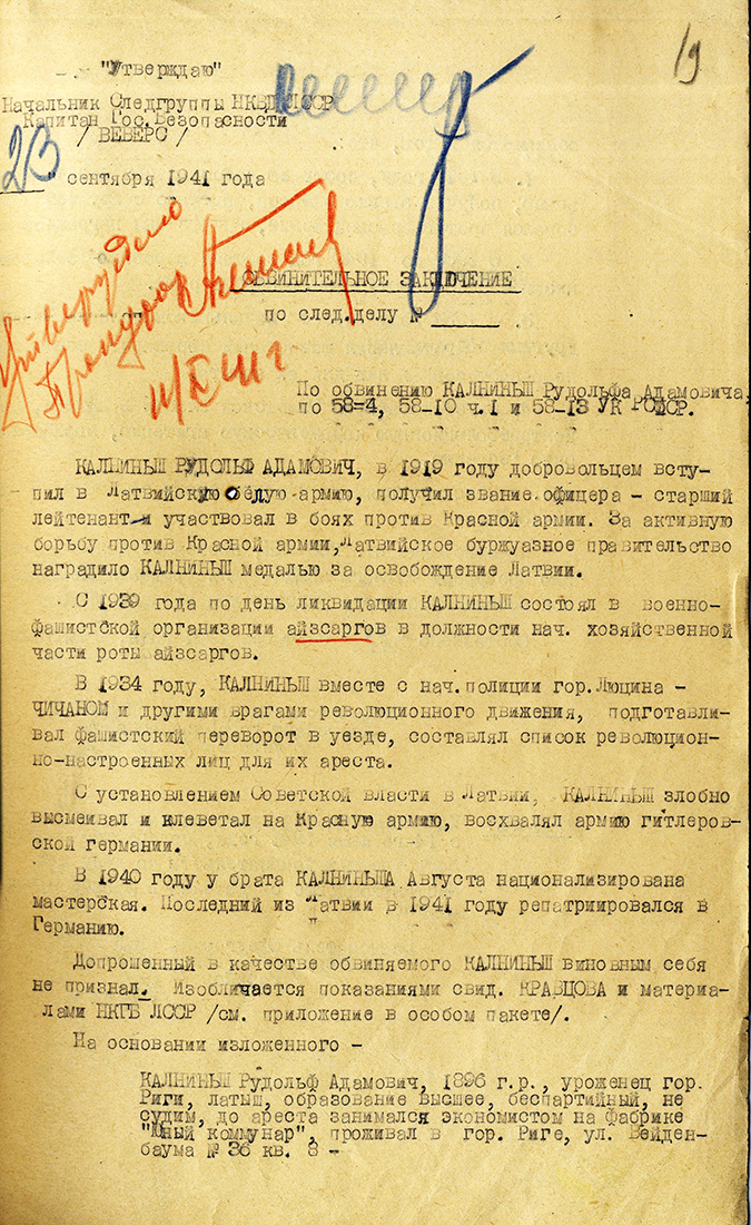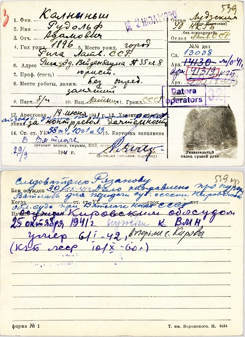 Tēvs Kalniņš Rūdolfs Ādama d., 1896, dzīvoja Ludzā, Daugavpils ielā 5. Arestēts 20.06.1941., ieslodzīts Vjatlagā, miris 06.01.1942. Kirovas cietuma slimnīcā. LVA, 1986. f., 1. apr., 41319. lieta; LVA, 1987. f., 1. apr. (Ludza), 20024. lieta.