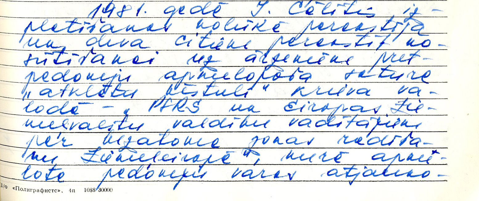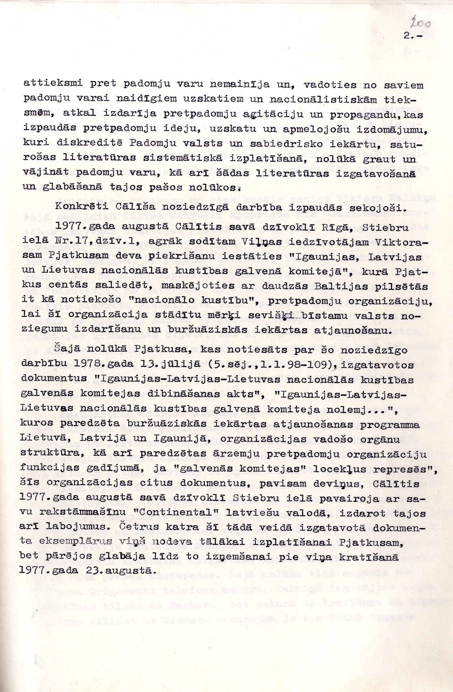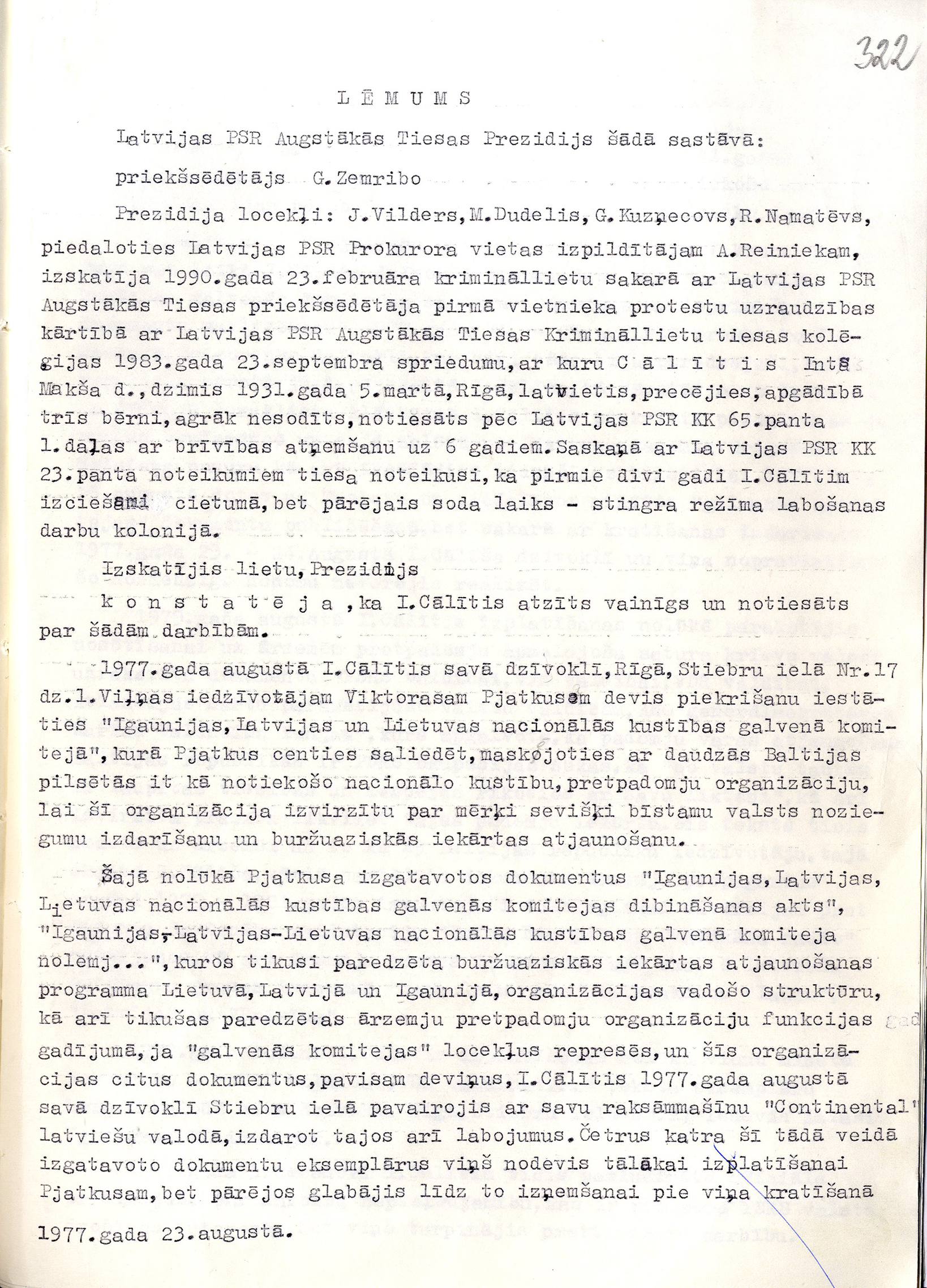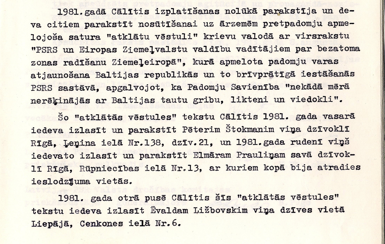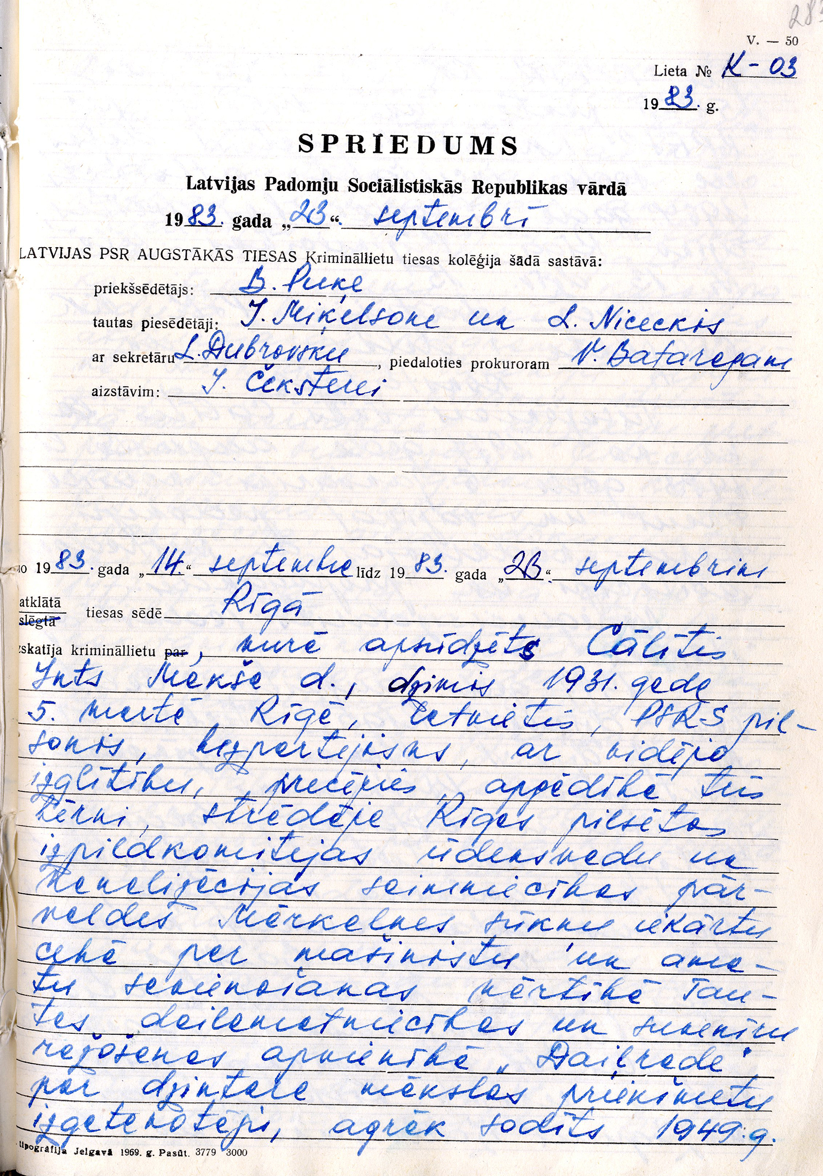 Publicējam 10 dokumentus no 1983. gada krimināllietas pret I. Cālīti, vienu dokumentu no Latvijas PSR Augstākās Padomes prezidija lietas par I. Cālīša apžēlošanu, kā arī uzskaites kartīti par I. Cālīti no Latvijas PSR Iekšlietu ministrijas Informācijas centra kartotēkas.