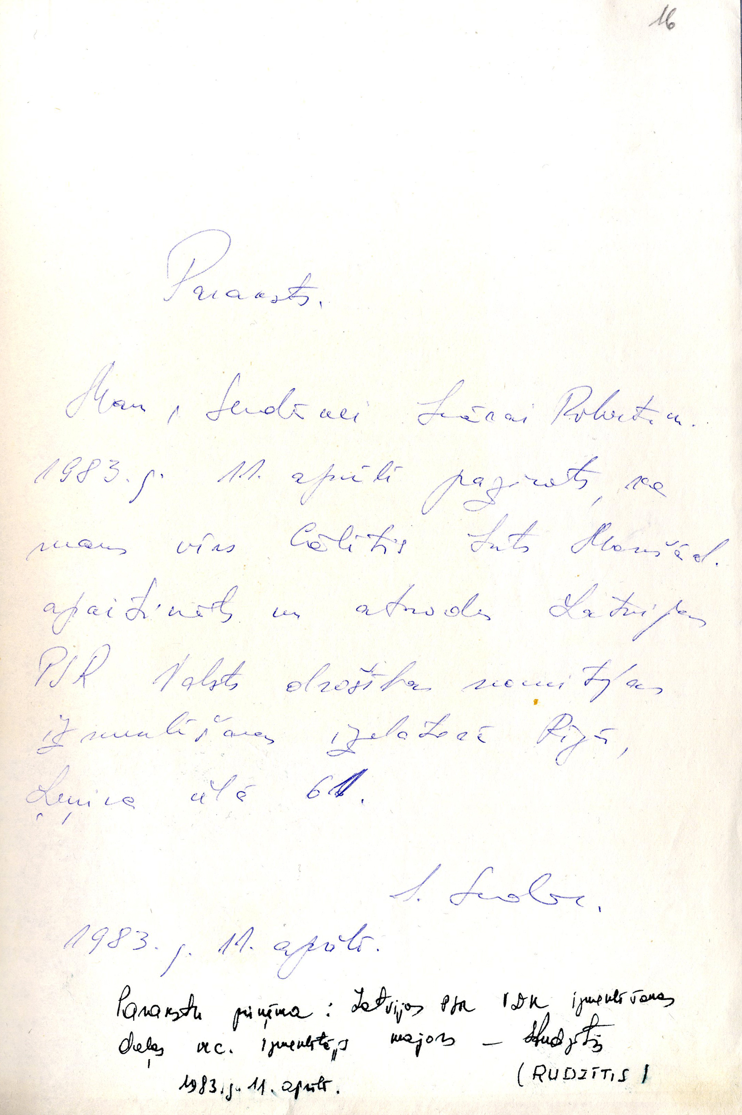 LVA, 1986. f., 2. apr., P-9274. l., 5. sēj., 2., 13., 16. lp. Oriģināls.
