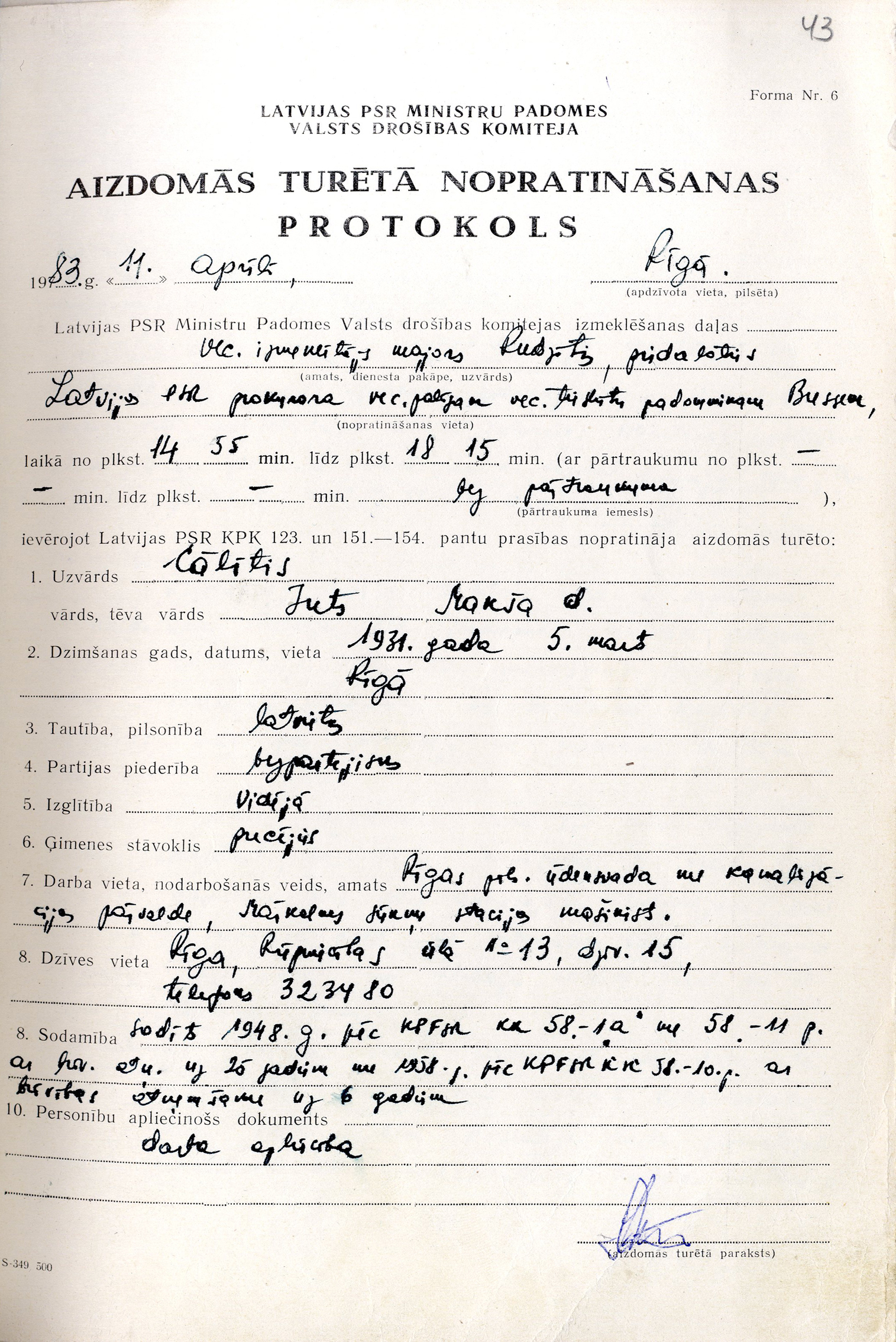 Šādas uzskaites kartītes PSRS Iekšlietu ministrijas savienoto, autonomo republiku, novadu un apgabalu Informācijas centros glabāja par katru arestēto un tiesāto personu. Kartītēs bija fiksēti arestētā personas dati, adrese, darba vieta, aresta datums, Kriminālkodeksa pants, pēc kura personai uzrādīta apsūdzība, tiesas dati, soda mērs, soda izciešanas vietu nosaukumi, atbrīvošanas vieta un datums, kā arī citas atzīmes. Personas aresta gadījumā attiecīgās administratīvi teritoriālās vienības IeM Informācijas centram tika pieprasītas ziņas par šīs personas iepriekšējām sodāmībām un šajās kartītēs ierakstītās ziņas bija tas avots, no kura tika sniegta pieprasītā informācija. I. Cālītis līdz arestam 1983. gadā bija tiesāts jau divas reizes tādēļ IeM Informācijas centrā par viņa iepriekšējām sodāmībām bija divas uzskaites kartītes. Pēc I. Cālīša aresta 1983. gadā, VDK sastādīja trešo kartīti par viņu, kas eksponēta šajā izstādē.