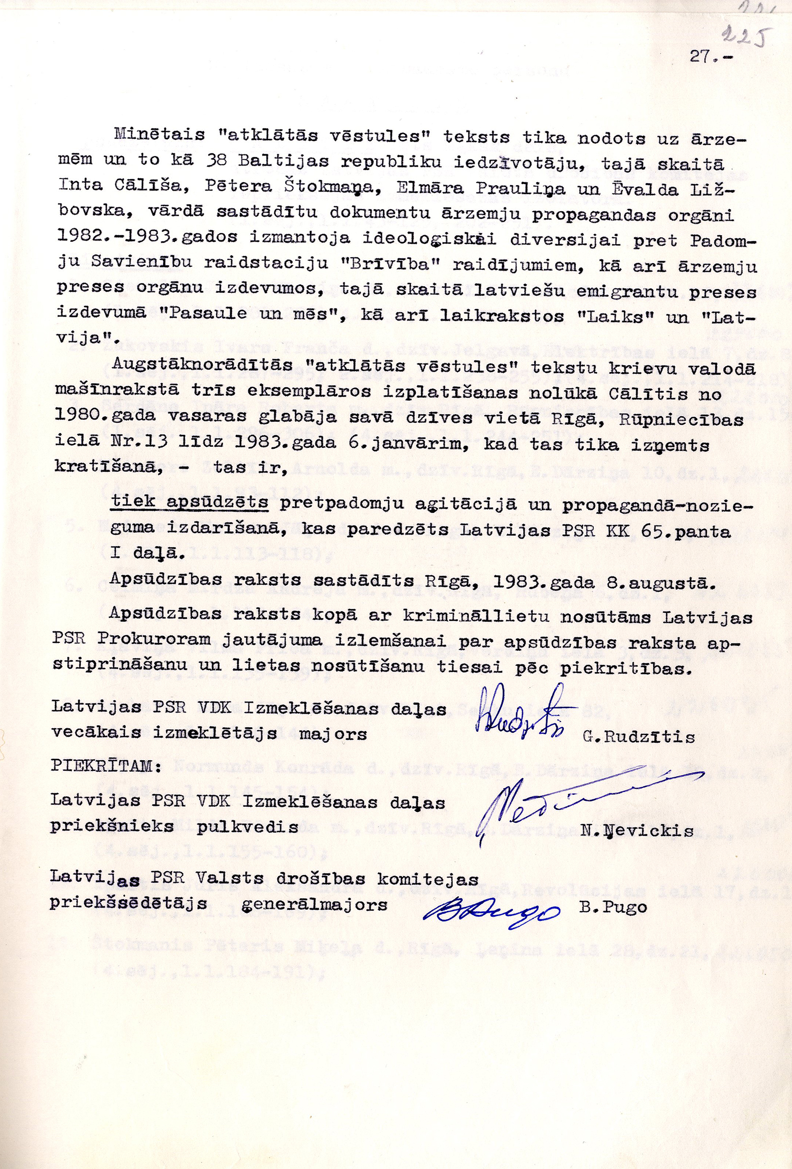 7. Fragmenti no apsūdzības raksta. 1983. gada 8. augusts.