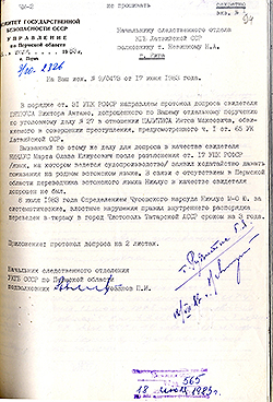 6. Permas apgabala VDK pārvaldes Izmeklēšanas daļas priekšnieka P. Rozanova vēstule Latvijas PSR VDK Izmeklēšanas daļas priekšniekam N. Ņevickim. 1983. gada 8. jūlijs.