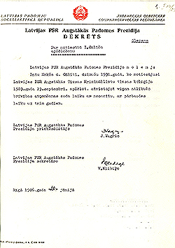 12. Fragmenti no Latvijas PSR Augstākās tiesas prezidija lēmuma. Starp 1990. gada 23. februāri un 4. maiju.