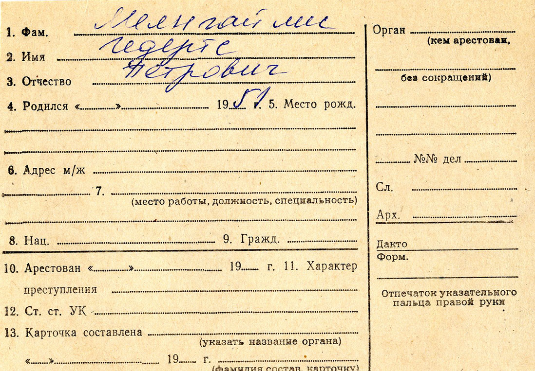 Šādas uzskaites kartītes PSRS Iekšlietu ministrijas savienoto, autonomo republiku, novadu un apgabalu Informācijas centros glabāja par katru arestēto un tiesāto personu. Personas aresta gadījumā Iekšlietu Informācijas centrs no šīm kartītēm sniedza ziņas par attiecīgās personas iepriekšējām sodāmībām. Tā kā Ģ. Melngailis agrāk sodīts nebija, tad šī ir vienīgā kartīte, kas bija par viņu sastādīta.
