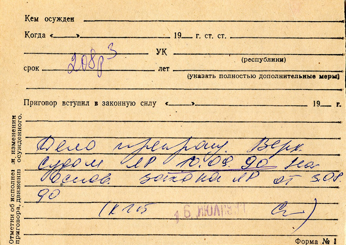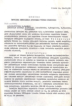 12. Latvijas Republikas Augstākās tiesas prezidija lēmums. Pēc 1990. gada 10. septembris(?).