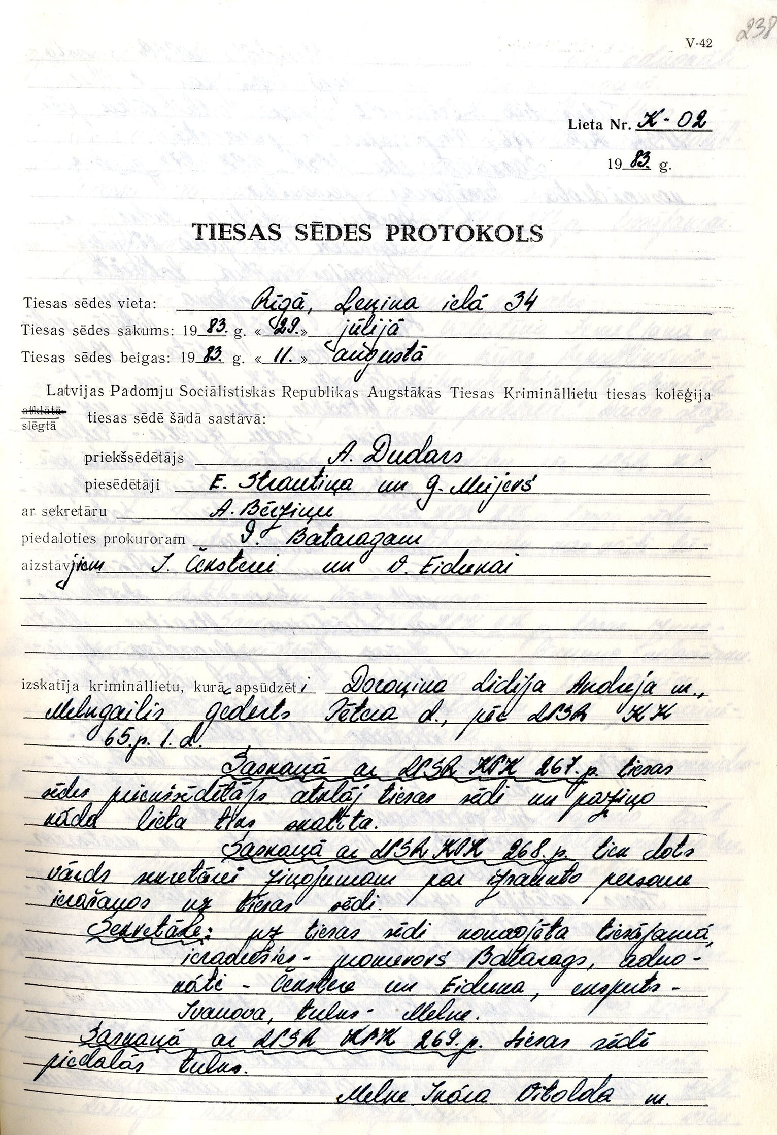 8. Fragmenti no tiesas sēdes protokola. 1983. gada 29. jūlijs – 11. augusts.