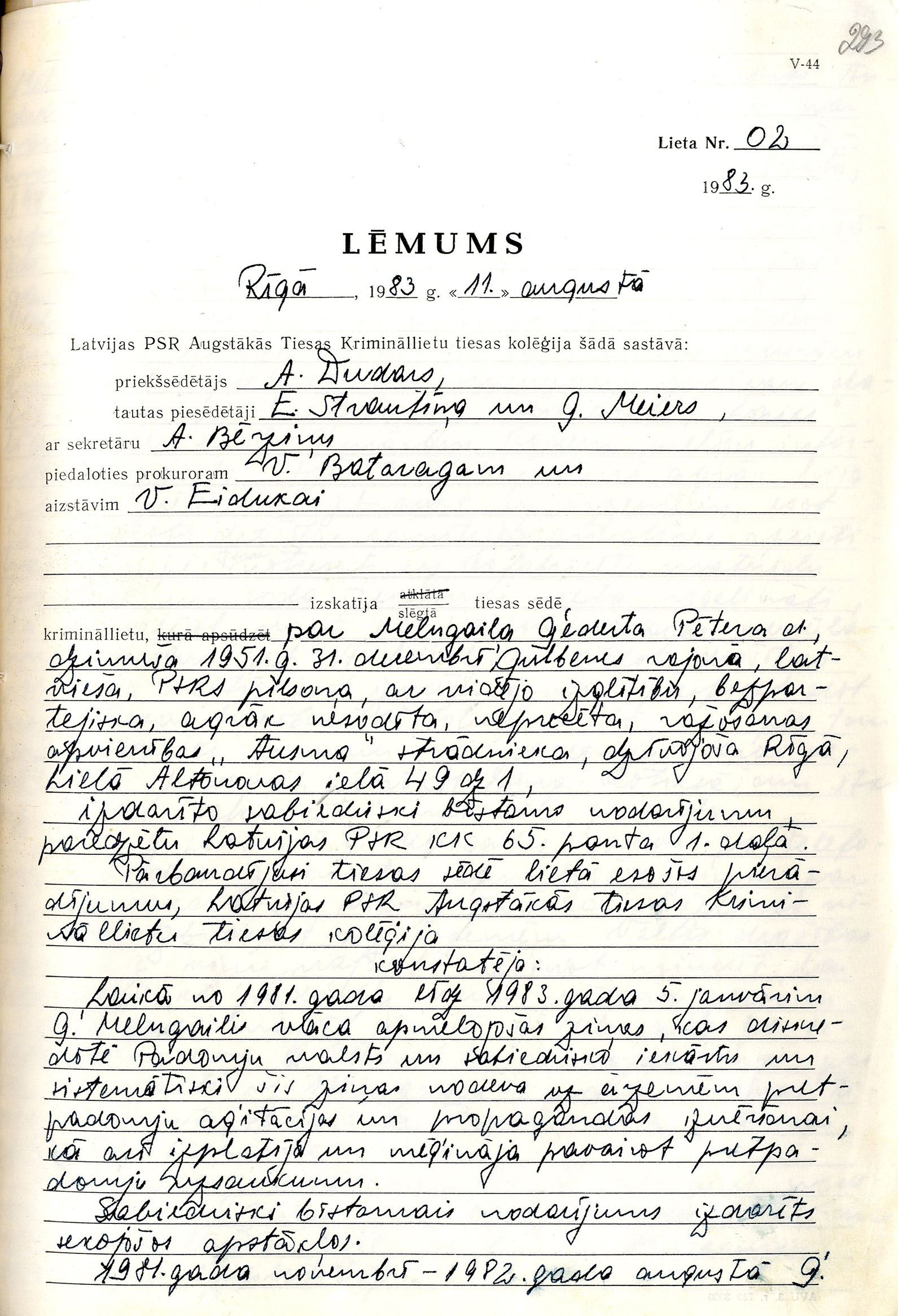 9. Fragmenti no Latvijas PSR Augstākās tiesas lēmuma. 1983. gada 11. augusts.