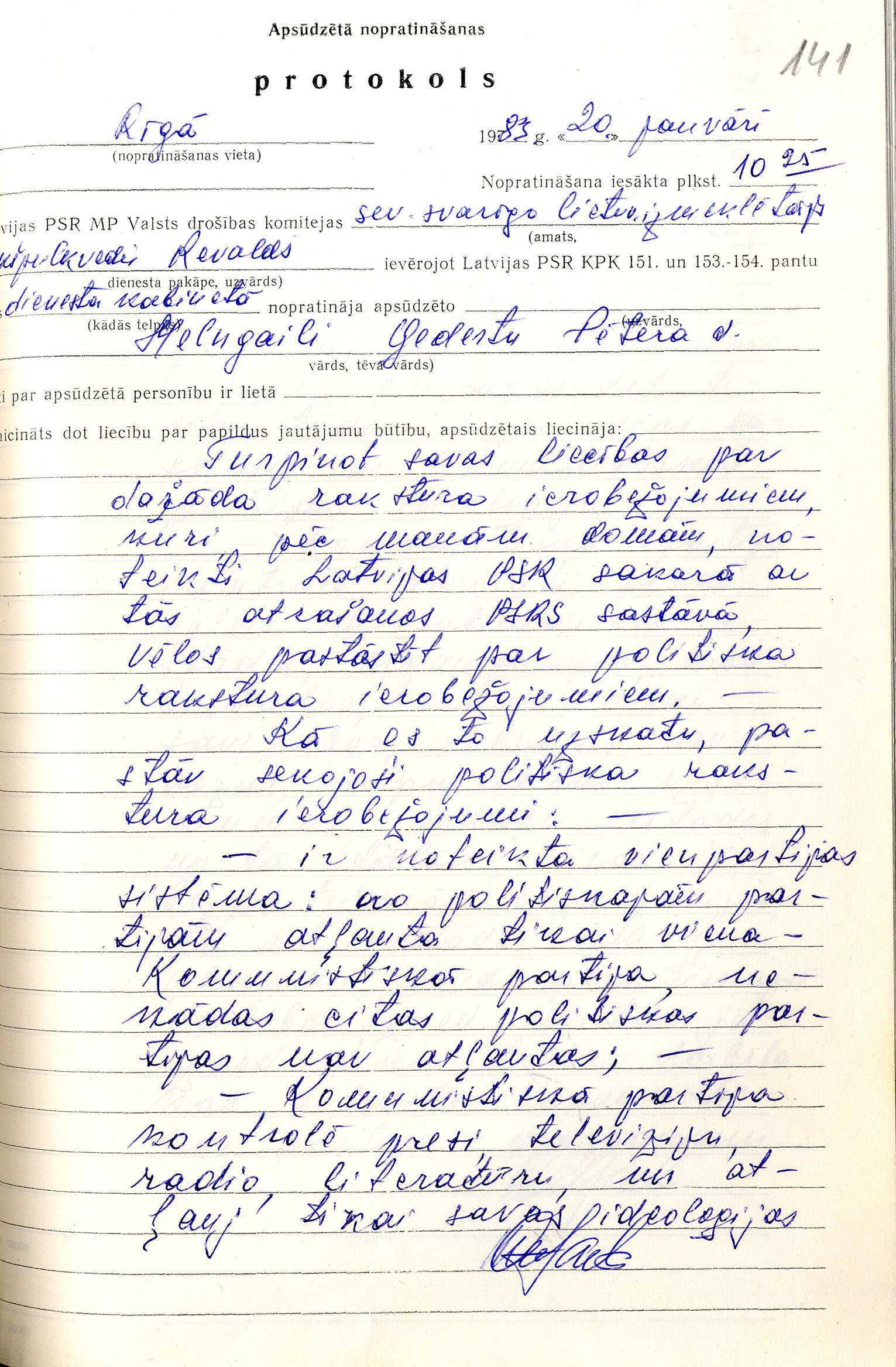 5. Fragmenti no aizdomās turētā nopratināšanas protokola. 1983. gada 11. janvāris.