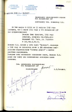 No šā dokumenta redzams, ka PSRS okupācijas laikā cilvēku varēja ”profilaktēt″ (t.i. saukt uz ″pārrunām″ ar VDK pārstāvi un draudēt par iespējamu saukšanu pie kriminālatbildības vai cita veida nepatikšanām) tikai par to, ka tas glabājis grāmatu ar ″idejiski kaitīgu saturu″ un iedevis šo grāmatu izlasīt kādam citam.