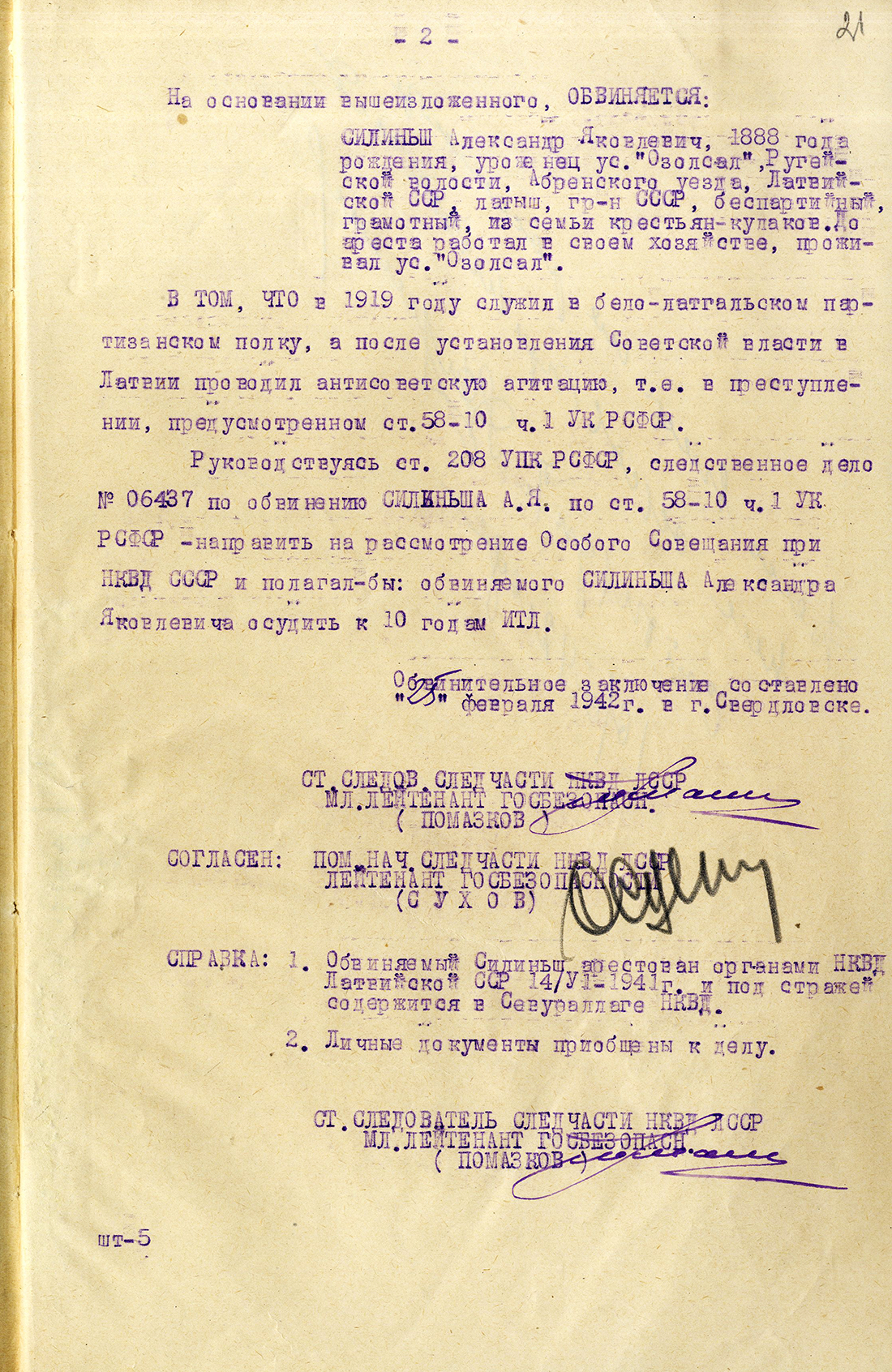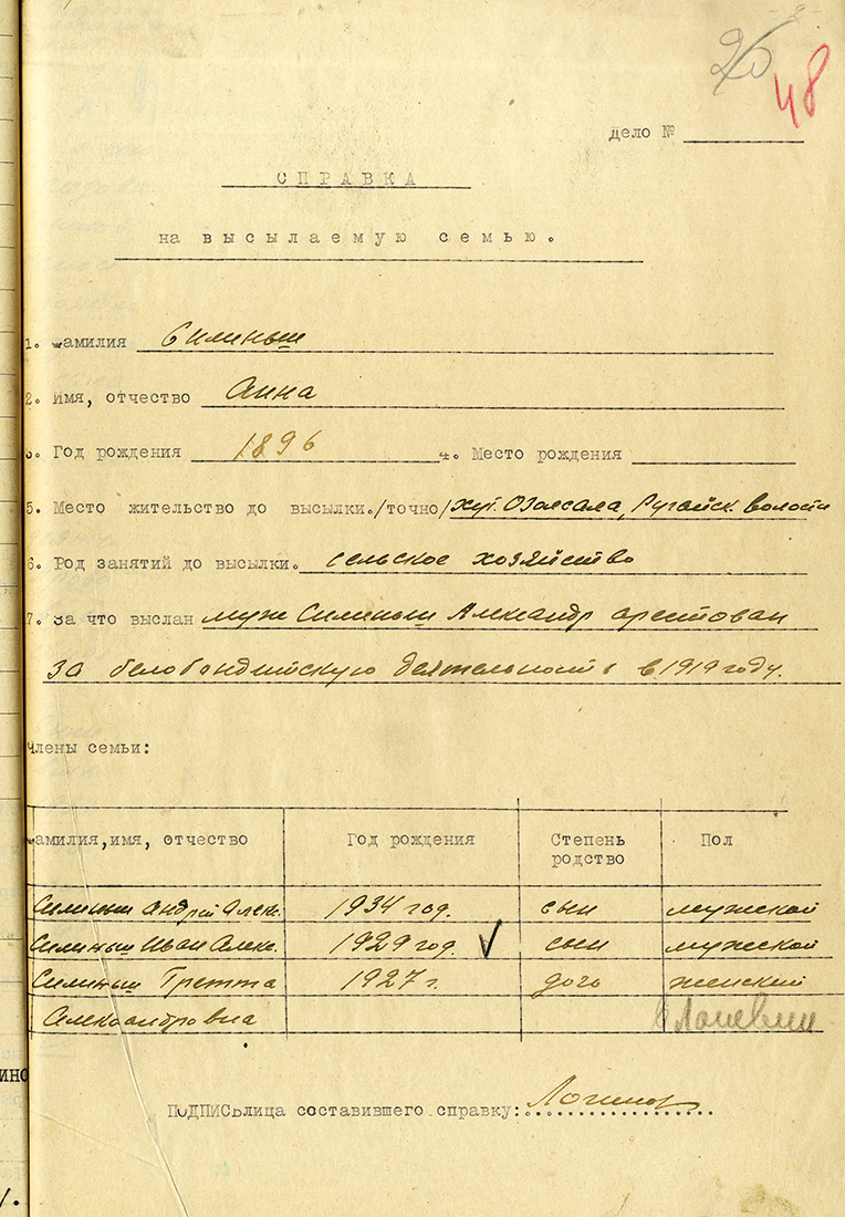 Margaritas Stradiņas (dzimusi Siliņa) ģimeneSiliņa Margarita Grieta Aleksandra m., 1927, dzīvoja Abrenes apriņķa Rugāju pagasta Ozolsalās, izsūtīta 14.06.1941, uz Krasnojarskas novada Berjozovskas raj., atbrīvota 15.09.1946. LVA, 1987. f., 1. apr. (Abrene), 15520. l. Tēvs Aleksandrs Siliņš Jēkaba d., dz. 1888, dzīvoja Abrenes apriņķa Rugāju pagasta Ozolsalās, arestēts 14.06.1941, nosūtīts uz Sverdlovskas apgabalu Sevurallags, miris 20.03.1942. LVA, 1987. f., 1. apr. (Abrene), 15520. l.; LVA, 1986. f., 2. apr., P-9941. l. Māte Siliņa Anna Andreja m., dz.1896, dzīvoja Abrenes apriņķa Rugāju pagasta Ozolsalās, izsūtīta 14.06.1941, uz Krasnojarskas novada Berjozovskas raj., atbrīvota 19.05.1956. LVA, 1987. f., 1. apr. (Abrene), 15520. l. Brālis Siliņš Andrejs Aleksandra d., dz.1934, dzīvoja Abrenes apriņķa Rugāju pagasta Ozolsalās, izsūtīts 14.06.1941, uz Krasnojarskas novada Berjozovskas raj., atbrīvots 15.09.1946. LVA, 1987. f., 1. apr. (Abrene), 15520. l. Brālis Siliņš Jānis Aleksandra d., dz.1929, dzīvoja Abrenes apriņķa Rugāju pagasta Ozolsalās, izsūtīts 14.06.1941, uz Krasnojarskas novada Berjozovskas raj., atbrīvots 18.09.1946. LVA, 1987. f., 1. apr. (Abrene), 15520. l. |