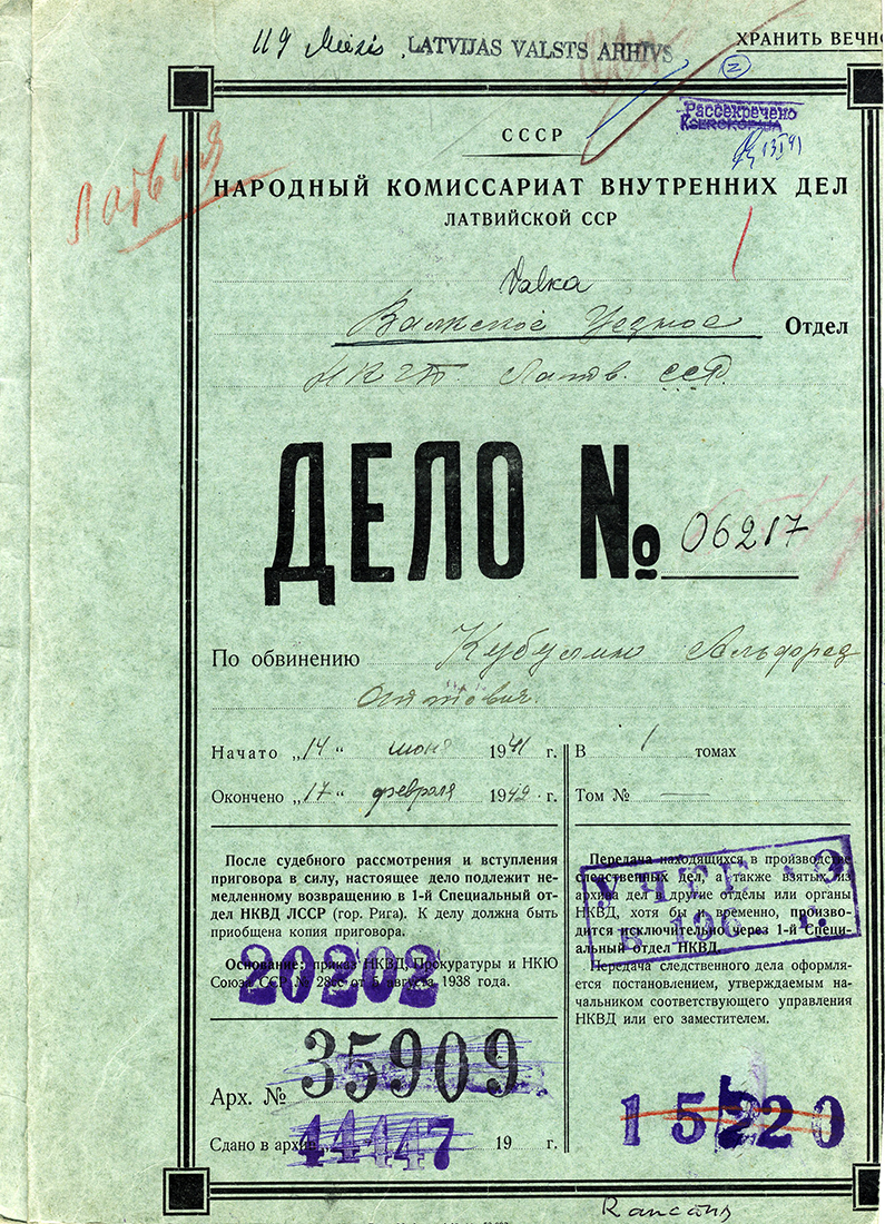 […] Esmu dzimis 1931. gada 21. martā Alūksnē, Merķeļa ielā 5, kur vectēvam piederēja sava māja. Mana māte Berta Bērziņa dzimusi 18. oktobrī 1909. gadā. Viņa strādāja Alūksnē, Šlosa fabrikā. 1938. gadā māte apprecējās un pārgāja dzīvot uz laukiem pie vīra – Alfrēda Kubuliņa, kurš dzīvoja Pededzes pagasta “Mežmalās” (Alfrēds Kubuliņš dzimis 9. maijā 1900. gadā). Līdz ar māti es arī aizgāju dzīvot uz “Mežmaļiem”. Tā kā mans audžutēvs Alfrēds Kubuliņš bija aizsargu vada komandieris un māte aizsardze, mēs 1941. gada 14. jūnijā tikām izsūtīti uz Sibīriju. 14. jūnija rīta agrumā dzirdēju svešas balsis mūsu mājā, bet mani neviens netraucēja. Vēlāk, kad piecēlos, tad redzēju satrauktus un noraudājušos mājiniekus, jo bija aizvests mans audžutēvs. “Mežmaļos” vēl dzīvoja audžutēva brālis Jānis Kubuliņš ar ģimeni – sievu Martu, dēlu Ēvaldu un meitu Valdu. Marta bija manas mātes māsa. Vēlāk, pirms pusdienlaika, atkal mājās ieradās sveši ļaudis, kuri lika mammai un man taisīties ceļā, būšot jābrauc uz citu vietu. Visi rīkojumi un pavēles bija skaļi, bravūrīgi, man nesaprotamā valodā. Rīkojumi bija jāizpilda īsā laikā. Uztraukumā kaut ko paspējām paņemt līdzi no drēbēm un ēdamā. Mājās palikušie Kubuliņi mani un māti iesēdināja zirga pajūgā un aizveda līdz lielceļam, kur mūs jau gaidīja smagā automašīna, lai tālāk mūs nogādātu Gulbenes dzelzceļa stacijā. Automašīnā bez mums vēl bija citi nelaimīgie cilvēki, kā arī mans audžutēvs. Tā kā es biju desmitgadīgs puika un nekur tālu no mājām nebiju braucis, tad man šis brauciens šķita interesants, bet no otras puses, bija arī bail, jo nezināju, ko ēdīsim, kur gulēsim. Gulbenē mūs iedzina aizrestotos lopu vagonos, kur bija divstāvīgas koku dēļu nāras un kāds caurums vagona vidū. Gulbenes stacijā vīriešus atdalīja no ģimenēm un līdz ar viņiem arī manu audžutēvu. Tā māte viņu redzēja pēdējo reizi, bet nezināja un neticēja, ka tā būs pēdējā tikšanās. Tālākais liktenis manu audžutēvu bija aizvedis Sevurallaga 1. nometnē, kur miris 1942. gada 3. februārī.