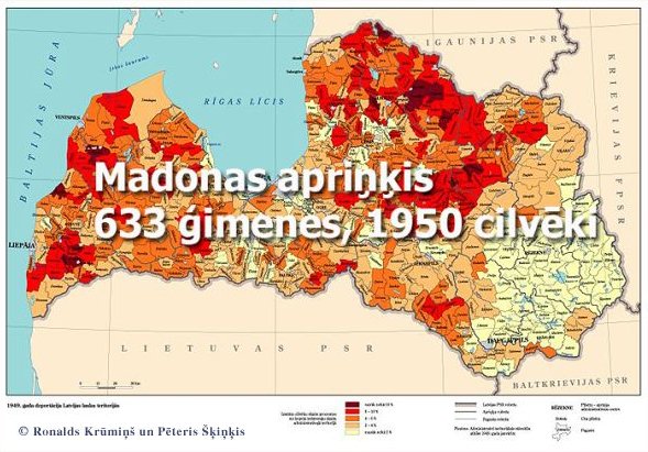 1949. gada 25. martā izsūtīto Latvijas iedzīvotāju skaits pa apriņķiem LR Iekšlietu ministrijas Nepamatoti represēto pilsoņu reabilitācijas daļas dati (1995. gads)