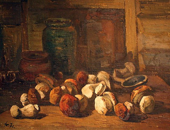 Klusā daba ar sēnēm. 1971. audekls, eļļa.