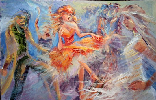 Modernisma neoreālisma virzienā, kustību ekspresija. Frontāli atvērta kompozīcija.