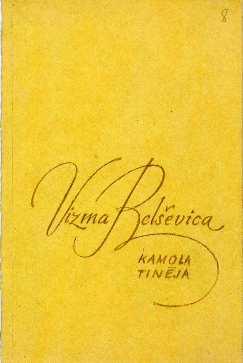 Vizmas Belševicas grāmatas "Kamolā tinēja" vāka makets. Mākslinieks Valentīns Ozoliņš. 1980. gads. Oriģināls, glabājas izdevniecības "Liesma" fondā.