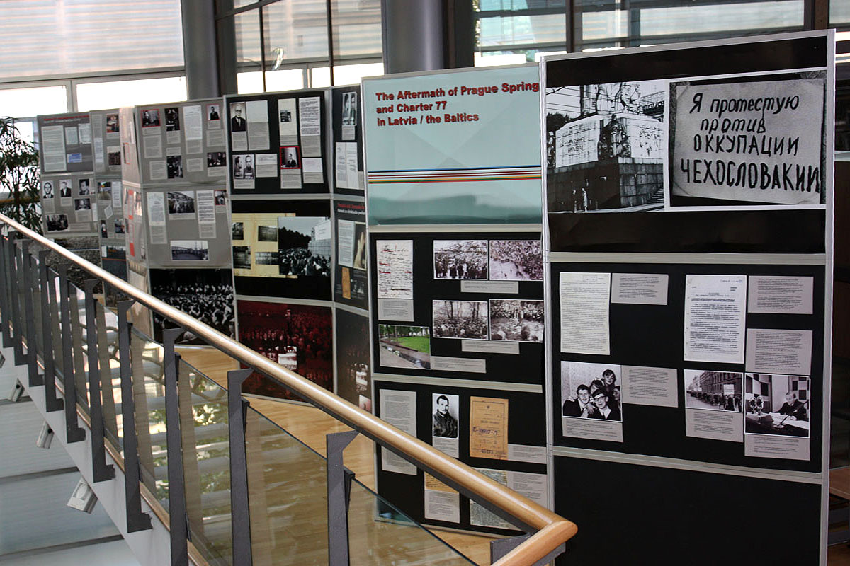 "Prāgas pavasara un Hartas 77 atskaņas Latvijā/Baltijā". Izstāde notiek ar kuratores PhDr. Helenas Noskovas (Mūsdienu Vēstures institūta Prāgā sekcijas vadītāja) laipnu
