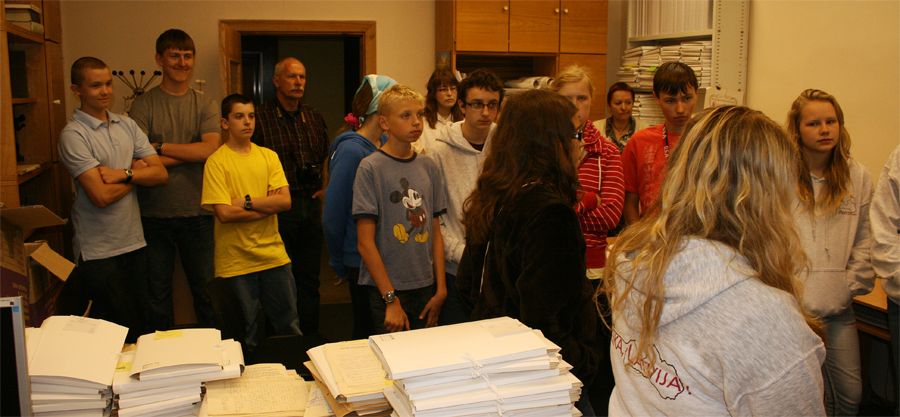 | Jau vairākus gadus Amerikas latviešu apvienības ikgadējā izglītojošā brauciena "Sveika Latvija" dalībnieki apmeklē Latvijas Valsts arhīvu. Šoreiz bija 14 jaunieši no ASV, Austrālijas un Kanādas, kuri iepazinās ar trimdas latviešu dokumentu kārtošanas procesu, saglabāšanu un izmantošanu. Viesi ar interesi uzklausīja Personu fondu un ārvalstu dokumentu nodaļas vadītājas Ineses Kalniņas stāstu par trimdas dokumentu fondiem. Galvenā arhīviste Everita Tamme parādīja, kā praktiski notiek dokumentu kārtošana. Jaunieši devās nelielā ekskursijā pa dokumentu glabātavu un pēc tam uzklausīja arhīva eksperta Gunta Švītiņa teikto par dokumentu izmantošanas dažādajām formām un iespējām.