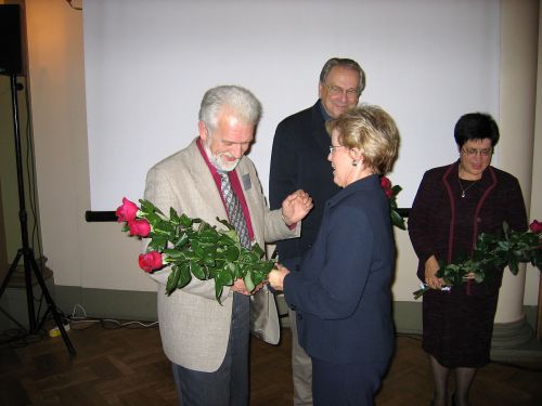 Māris Brancis un Tālivaldis Bērziņš sveic Viju Zuntagu-Bērziņu ar stāšanos PBLA Kultūras fonda priekšsēža amatā