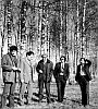 No kreisās: Imants Ziedonis, Vitauts Ļūdēns, Ojārs Vācietis, Māris Čaklais, Jānis Peters.