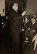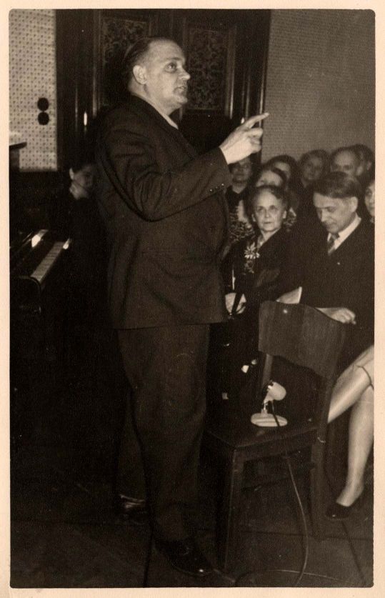 Arvīds Grigulis speaks at a writers' meeting in the 1960s.