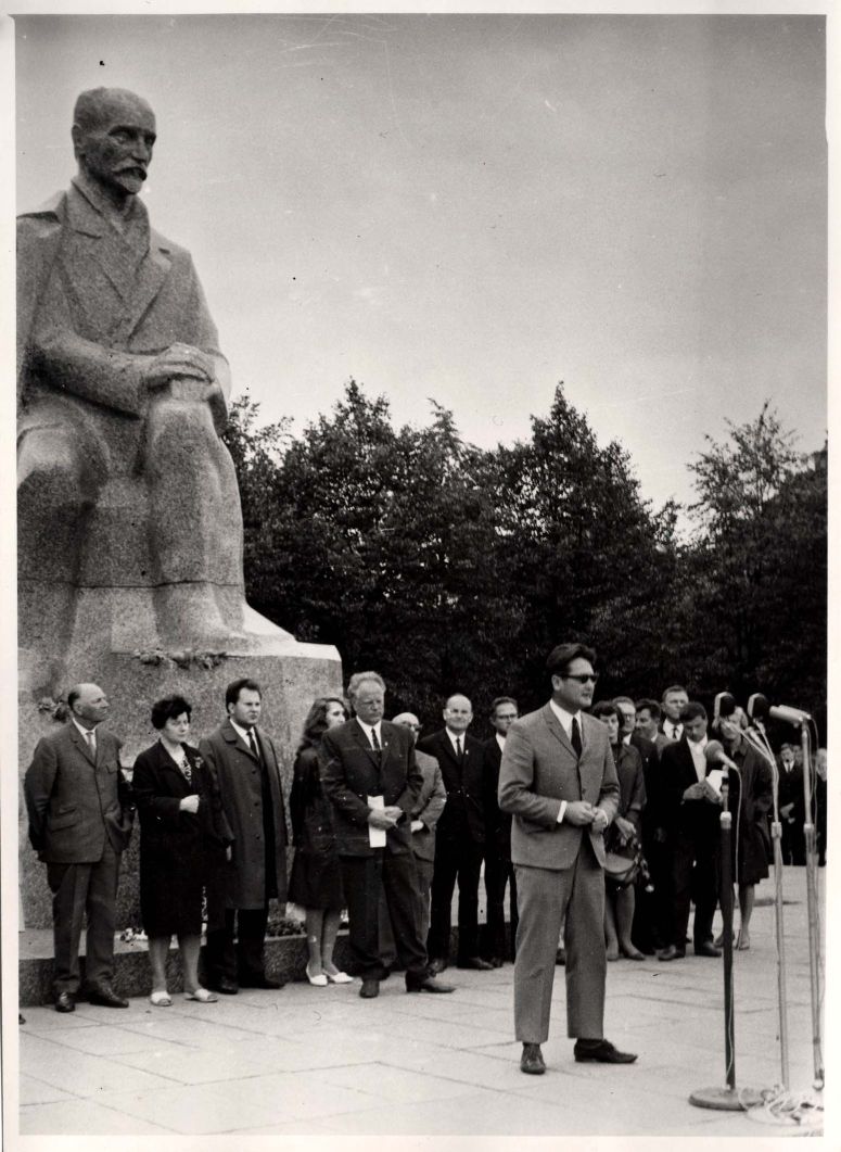 Poet Imants Auziņš, who angered the authorities with his poem “Pļi!”. Auziņš is seen here at a Poetry Days event by the Rainis Monument on September 10, 1968.
