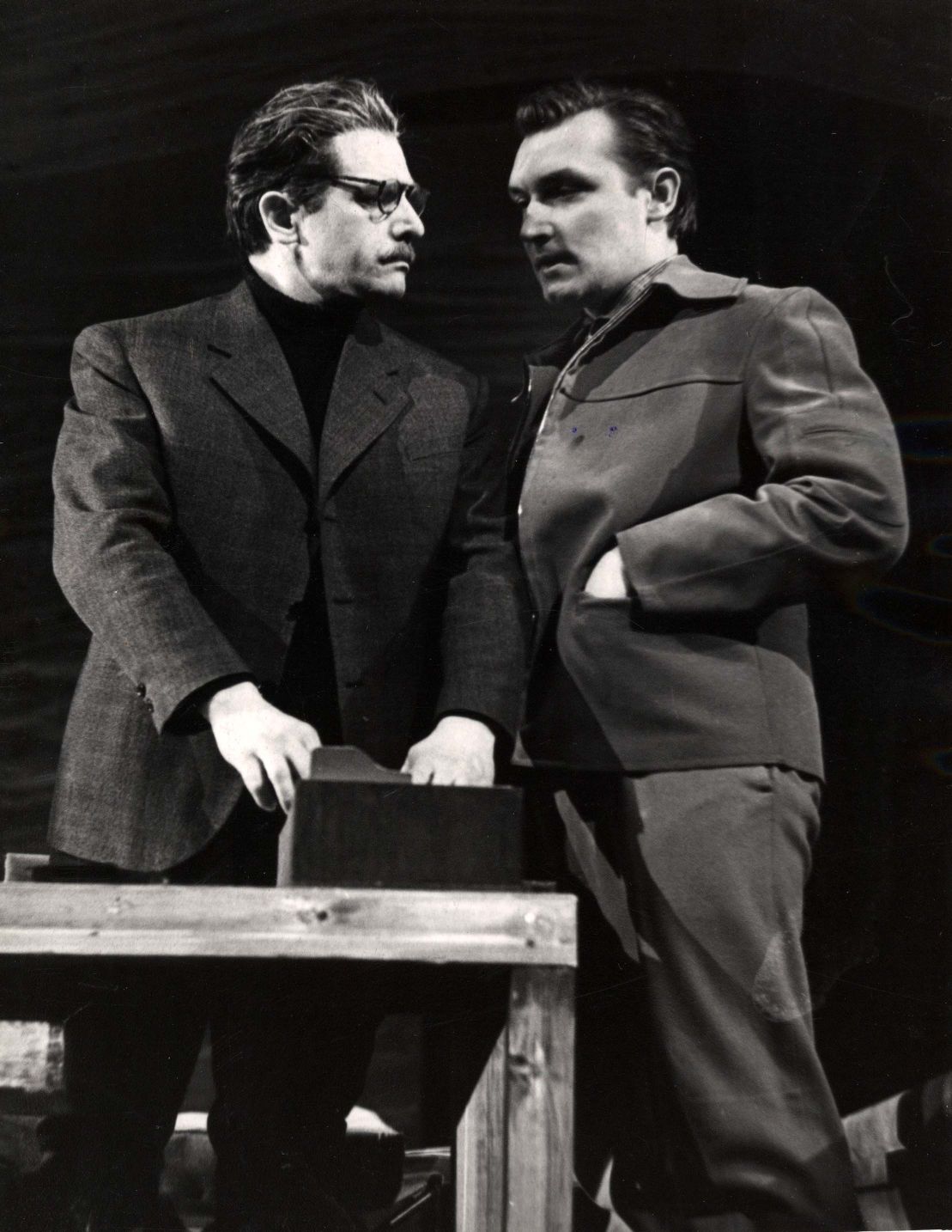 The premier of Laimonis Purs' play “Redzēt jūru” on February 15, 1968. The story's hero Anrijs Klocēns (played by Uldis Dumpis, on the right) tells Pēteris Lapiņš (played by Jānis Kubilis), “...Faith! Latvians by nature are not religious. All kinds of faiths have always been imposed upon them by others...”