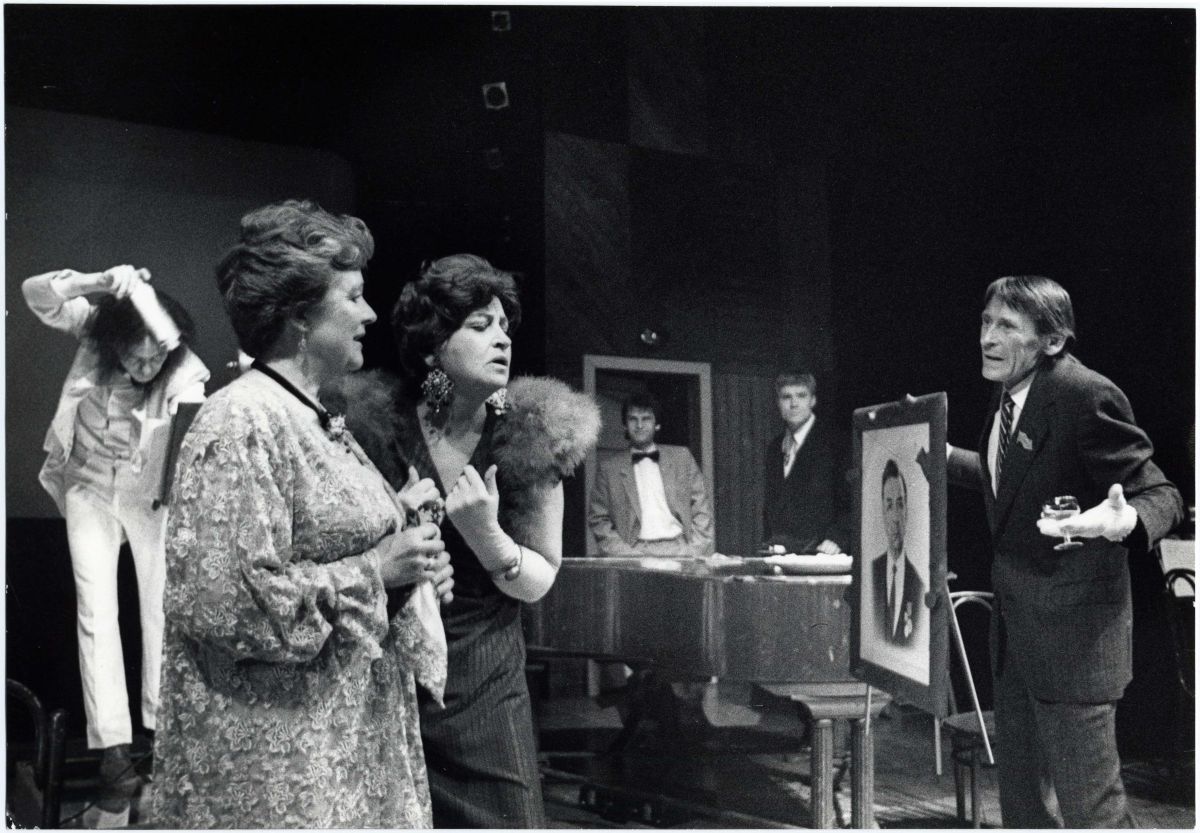 A scene from Gunārs Priede's play “Smaržo sēnes” at the Latvian SSR State Youth Theater. The play portrays the disparity between Soviet ideals and reality, and was eventually banned until 1988.