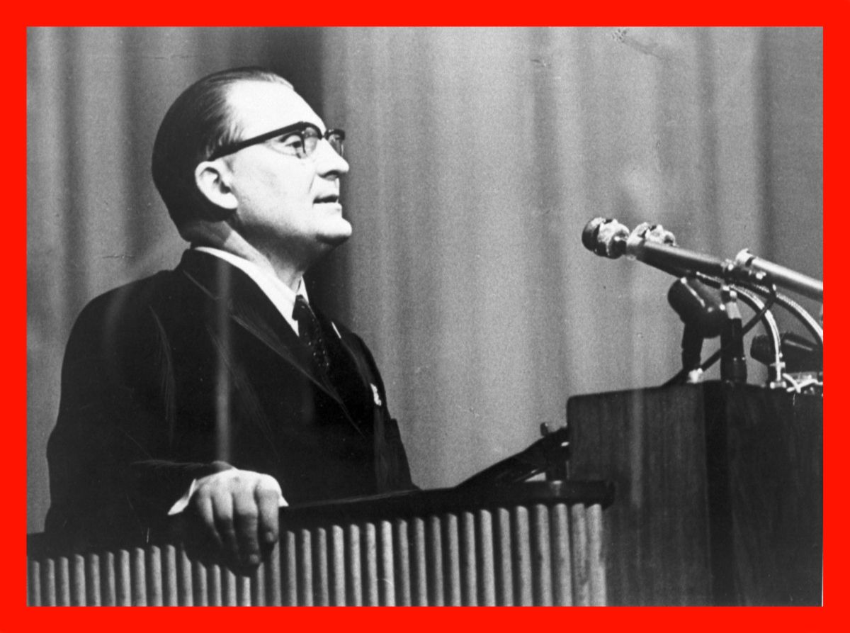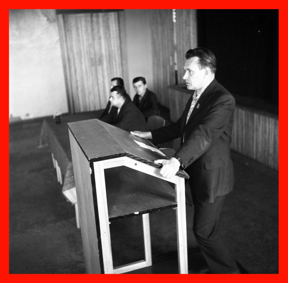 Augusts Voss, first secretary of the Central Committee of the Latvian Communist Party (LCP), delivering a speech in the late 1960s.