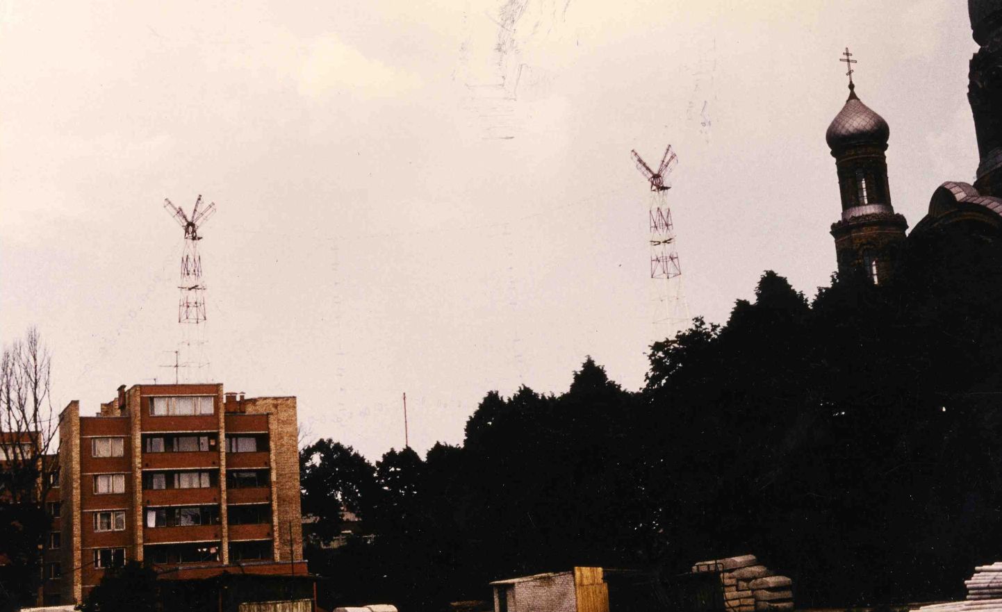 Towers set up on a Soviet military base for scrambling radio broadcasts.