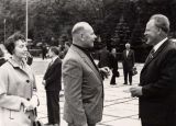 Alberts Jansons (first from right), the first secretary of the Soviet Writers' Union, conversing after a poetry reading by the Rainis Monument on September 10, 1968.