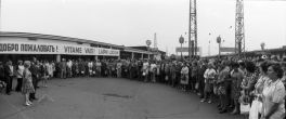 A group of Czechoslovak tourists at the Riga Railway Station in the 1960s.
