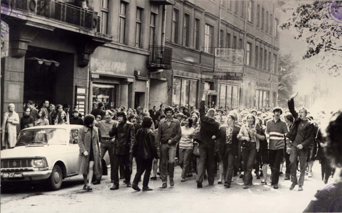 Demonstrācija Kauņā 1972. gada 18. maijā sakarā ar arodskolnieka Roma Kalantas pašsadedzināšanos. Lietuvas Sevišķais arhīvs, K-1. f., 58. apr., 47644./3. l., 1. sēj., 80., 85. lp.