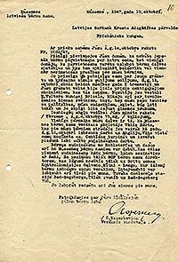 | Müssen latviešu bērnu nama vecākā skolotāja O. Mazarkevica vēstule. 1947. gada 19. oktobris. LVA, 2176. f., 2v. apr., 106. l., 10. lp. |