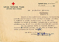 | Mācītāja J. Reinsona ziņojums Latvijas Sarkanajam krustam. 1947. gada 14. maijs. LVA, 2176. f., 2v. apr., 95. l., 58. lp. |