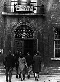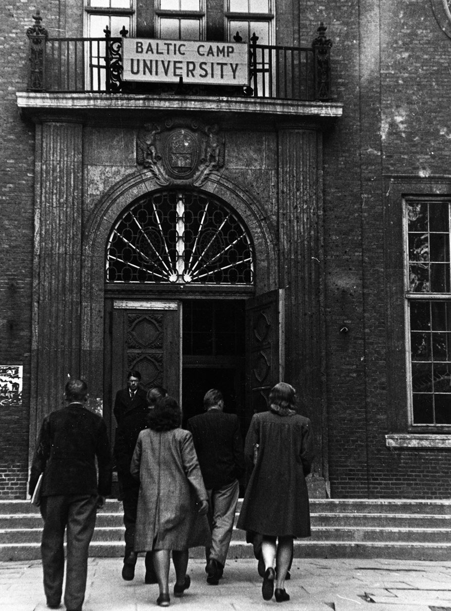 | Tudengid ruttavad loengutele, Balti Ülikooli hoone Hamburgi ajaloomuuseumis, arvatavasti 1946. aastal. VEMU FK.61-22 |