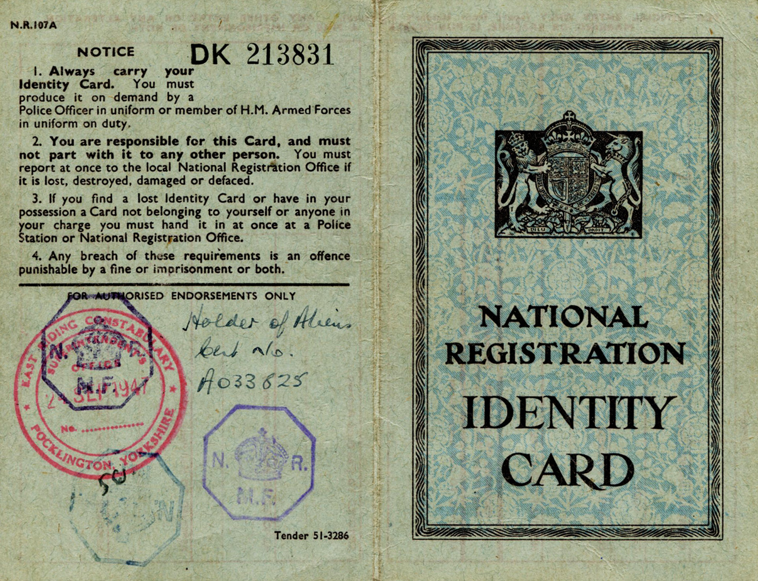 | Identitātes karte. Lielbritānija. 1947. gads. LVA, 2250. f., 53v. apr., 30. l., 3. lp. |