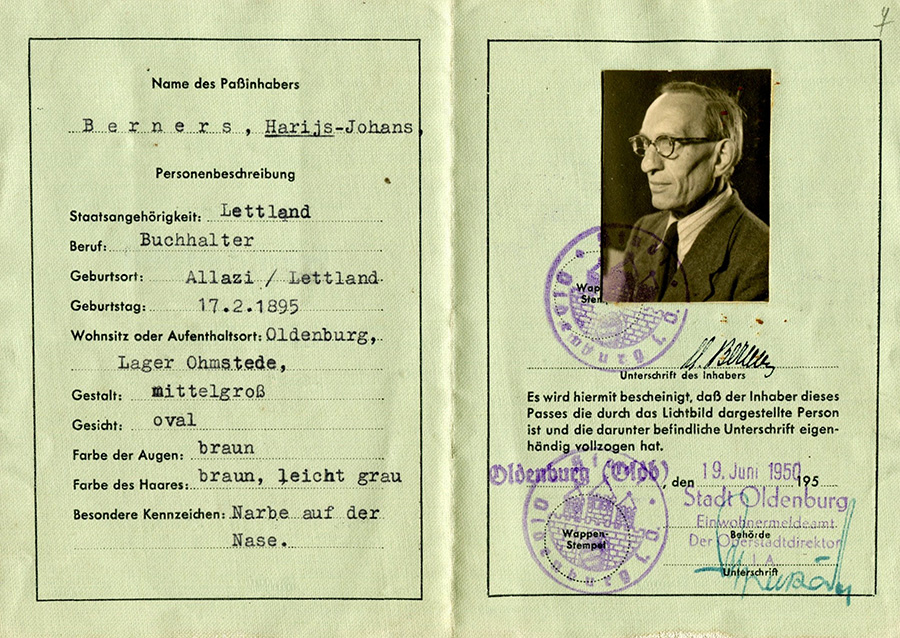 | Nepilsoņa pase. Vācija. LVA, 2250. f., 90v. apr., 2. l., 6., 7. lp. |