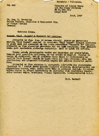 UNRRA apkārtraksts sakarā ar Baltijas valstu bēgļu sieviešu nodarbināšanas iespējām tuberkulozes sanatorijās Lielbritānijā. 1946. gada 19. jūlijs.