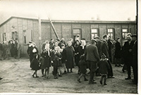 | Latvijas bēgļi no DP nometnes "Tērvete" dodas darbā uz Angliju. Oldenburga, 1947. gada aprīlis. LVA, 2250. f., 25v. apr., 1. l., 8. lp. |