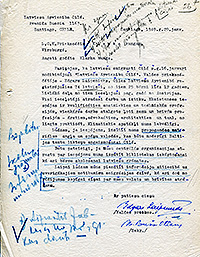 | Latviešu apvienības Čīlē valdes priekšsēža vēstule Latviešu Centrālās komitejas priekšsēdim. 1949. gada 29. janvāris. LVA, 2335. f., 1. apr., 221. l., 7. lp. |