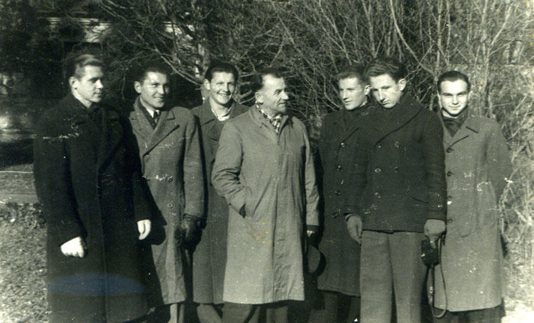 | Members of Niurtingen basketball team with famous Lithuanian educator Stasys Barzdukas (in the center), 1947 |