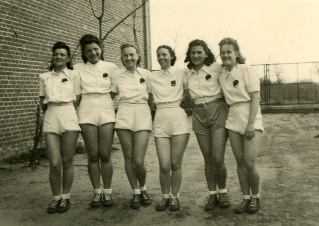 | Estonian volleyball team of Schwarzenbek, masters of the British zone: sisters Sammalsoo, Rae, ?, Seepere, Tõsine. The Baltic Days in Lübeck in 1947. VEMU FK.61-58 |