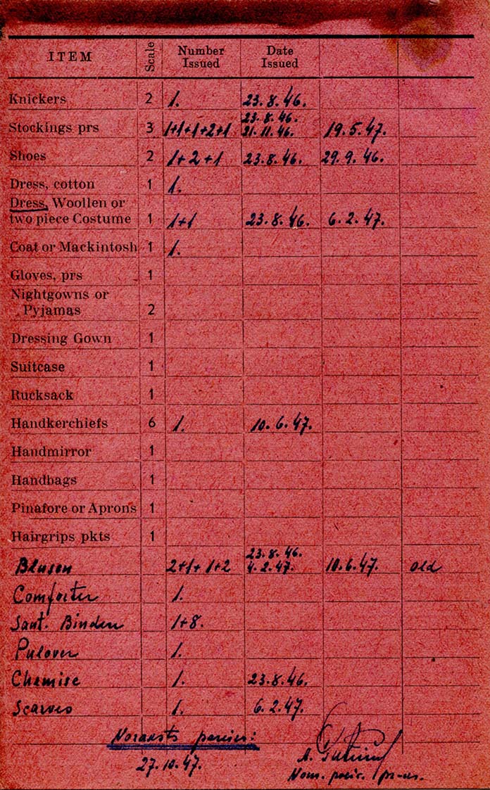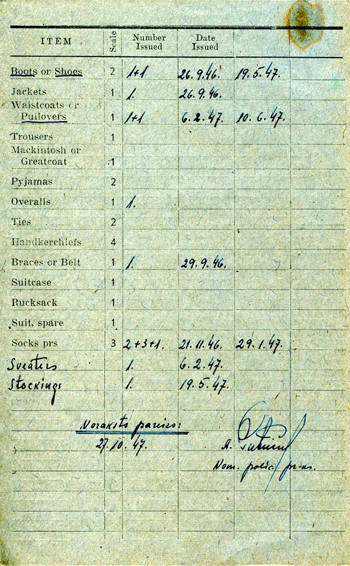 Civilian refugees were provided with shelter in refugee camps, a rational (though rather modest and not always of good quality) portion of food, the most necessary clothes and medical care. Additional goods were purchased for the refugees for the funds of the Latvian state that were de-blocked by the USA, the refugees also got considerable aid from the Red Cross, the central Latvian refugee organisations and from Latvians who lived in Sweden and other countries. Special attention was given to the former Latvian soldiers who very frequently had no civilian clothes at all and were in need of medical treatment and prosthetics.