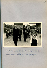 Archbishop T. Grīnbergs arrives in Kassel DP camp. 19 June 1948.