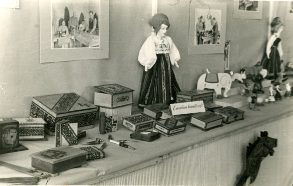 Eestlaste käsitöö müügil UNRRA kingituste poes Augsburgis, dateerimata.