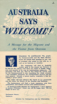 | Austrālijas imigrācijas un informācijas ministra aicinājums. LVA, 2250. f., 29v. apr., 6. l., 2. lp. |