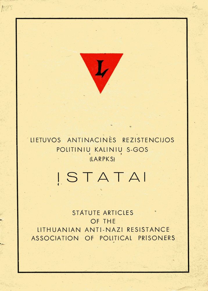 | Lietuvos antinacinės rezistencijos politinių kalinių sąjungos įstatai. Augsburg, 1946, LNB A(LKA)111/946 |